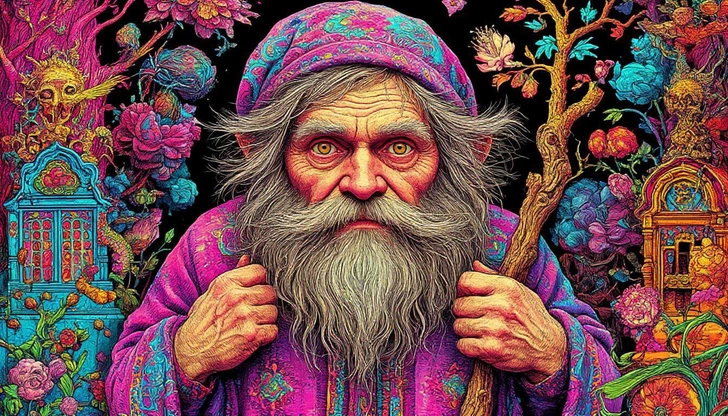 А вот и самая двусмысленная старушка славянского фольклора — Баба-Яга. Она не просто злодейка из сказок, а могущественная хозяйка границы между мирами: нашим, Явью, и иным, Навью. Живет она на самом краю леса, в знаменитой избушке на курьих ножках, которая умеет поворачиваться к лесу задом, а к гостю — передом. Сама она — страшная и древняя: костяная нога, длинный нос в потолок врос, зубы на полке лежат. Но эта жуть — знак ее силы и близости к миру мертвых.