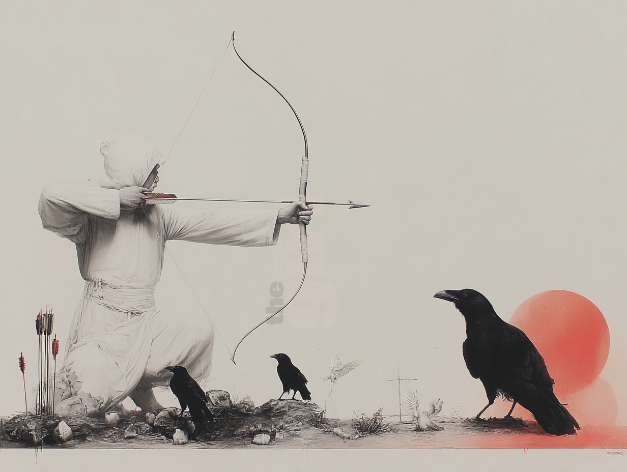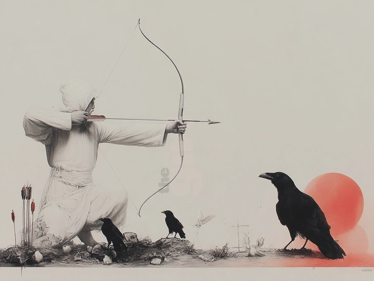В этот роковой момент на арену вышел искусный лучник Хоу И со своим волшебным луком. Меткими выстрелами он начал сбивать лишние солнца. С каждым попаданием на землю падал трехногий ворон — воплощение очередного светила. Когда на небе осталось лишь одно солнце, И остановился — герой понимал, что мир не может существовать без тепла и света. Земля наконец обрела покой, и люди славили своего спасителя.